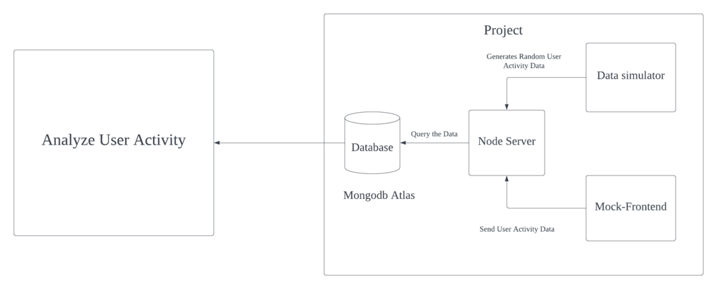 - A Node.js backend service continuously generated and stored simulated user activity in MongoDB Atlas.